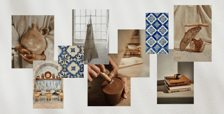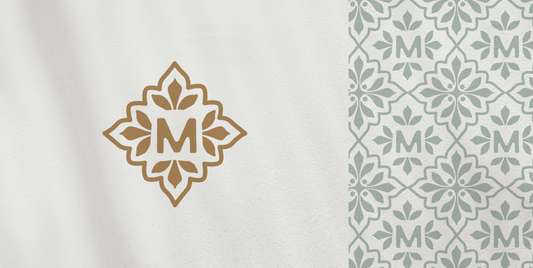 Tiene una fuerza tranquila. El símbolo principal trae una vibra de azulejo griego o portugués, perfecto para una marca de una sola palabra. La tipografía es estructurada pero cálida, y la paleta natural lo amarra todo.